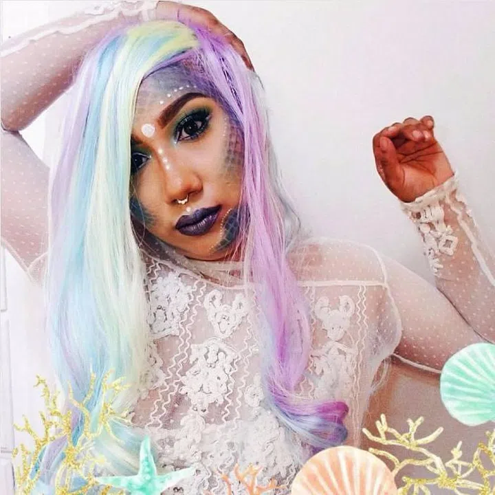 Another magical creature that us girls have loved at some point of our lives is a mermaid and you can easily re-create this ethereal look with a few simple steps. Dig out a fishnet stocking that you have in your closet and put it over your head.