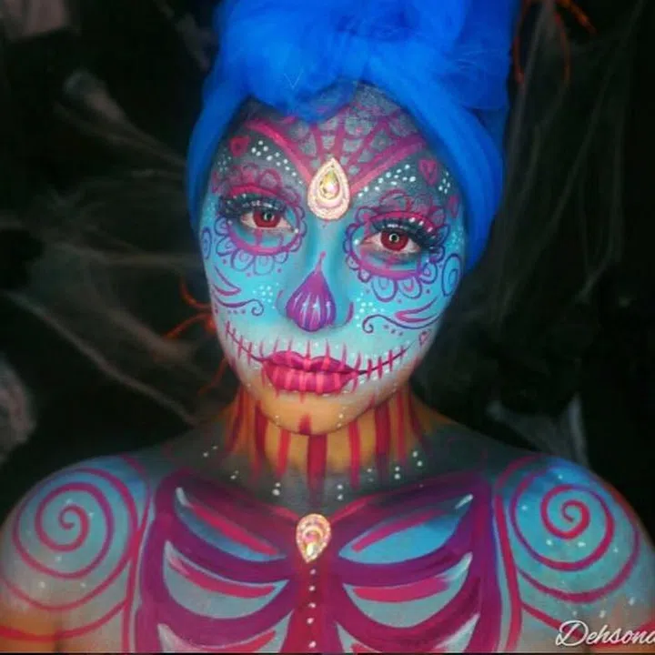 All you need is to look up for pictures online and use bright-coloured eyeliners to outline the shapes that are usually drawn on the sugar skull. You can also unleash your creativity by drawing on your own designs.
