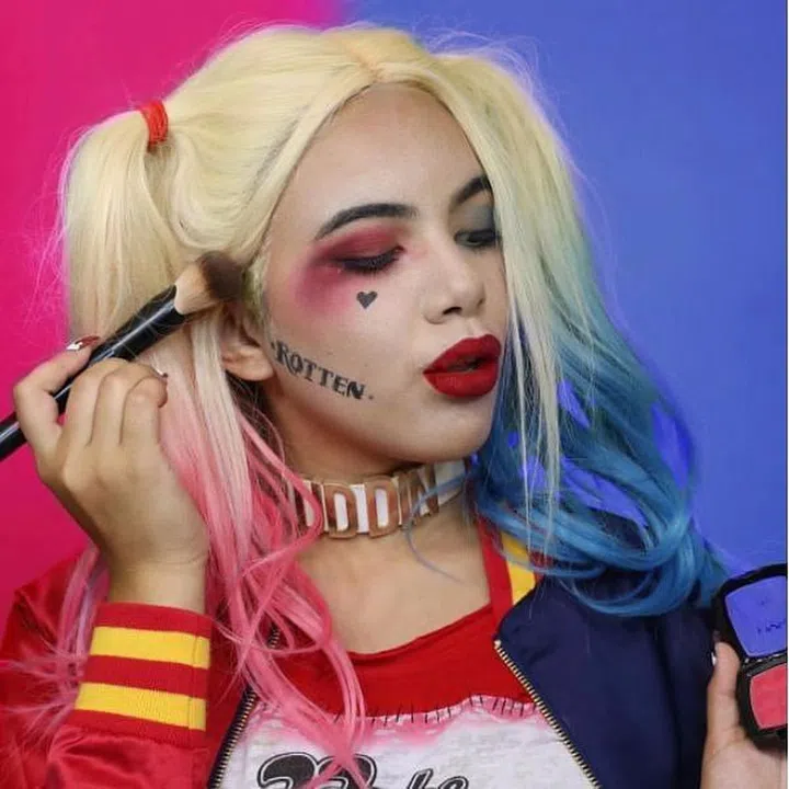 To transform yourself into Margot Robbie’s version of Harley Quinn, you’ll have to apply the lightest shade of foundation you can find. Alternatively, you can use white face paint.