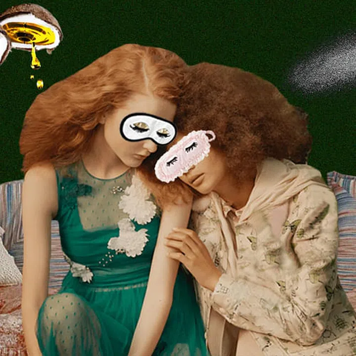 Once a week, apply coconut oil to your scalp first and work it through from root to tip. Finger-brush it through thoroughly before wrapping your hair in a scarf and double-case your pillows — lest the oil seeps through.