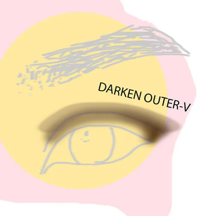 The outer-v refers to the outermost corner of your eye where you can feel the socket of your eye below the brow bone. You should always place the deepest colour in the outer-v to contour your eyes while adding to the illusion of a sunken crease area. Your eyes will look larger and overall, well-balanced when the outer one-third of your eyelid is washed with dark and smoky colours. Use a pencil brush for precision shading on the outer-v and smoking it slightly into the crease.