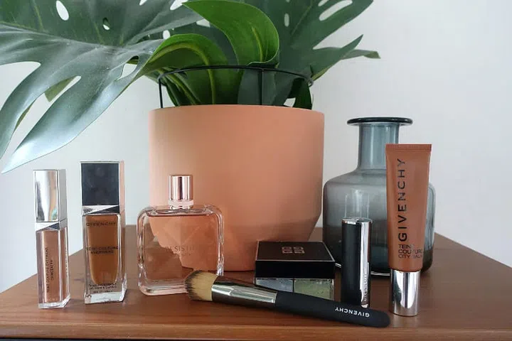 Products she has on here include Givenchy Beauty’s Teint Couture Everwear Foundation in Y400; imperfection-blurring, radiance-boosting Prisme Libre Loose Powder in Mousseline Acidulee; luminous matte Le Rouge Couture lipstick in the best-selling L’Interdit; and Le Rose Perfecto Beautifying Lip Balm.