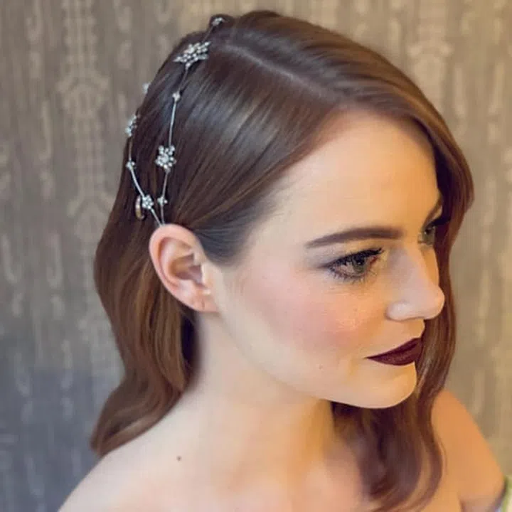 No time to see your stylist? Jazz up your ‘do instantly with a delicate crystal band like Emma Stone. Whether you wear your hair down or in an updo, this is a great and easy way to glam things up.