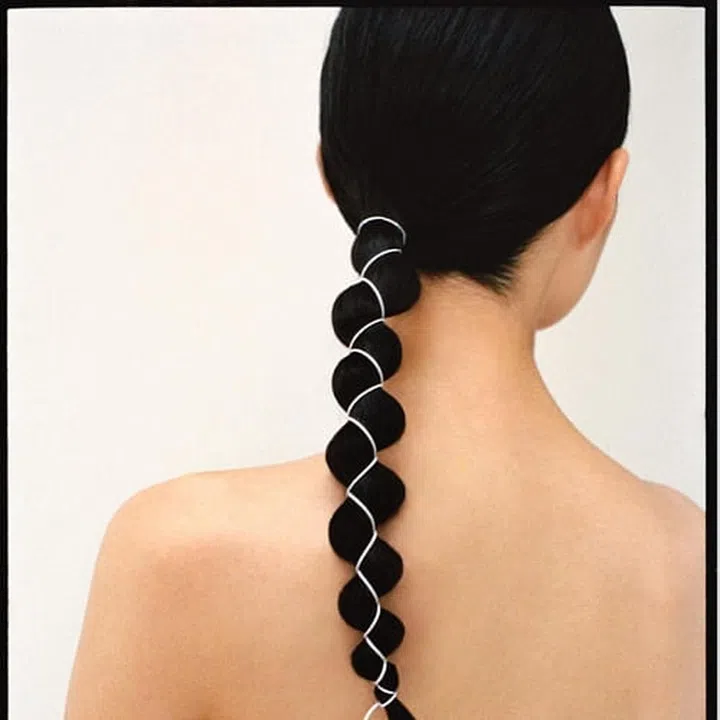 Reference the way geishas and samurais used to keep their hair tidy and ask your stylist to create a simple yet striking graphic look using Japanese paper string. We just love how the white string stands out on black Asian hair!
