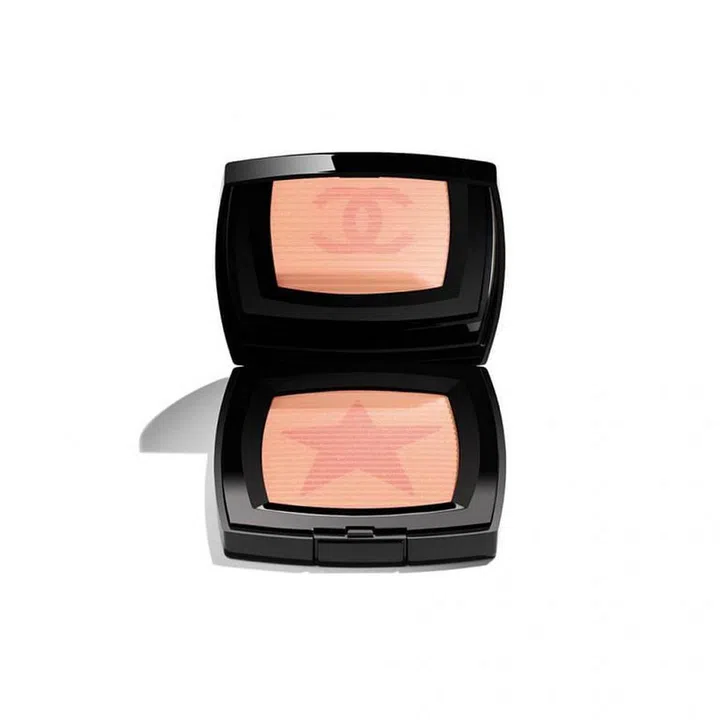 The limited-edition duo of Blush Comete, the powders of which are designed and pressed with a lenticular technique to create an optical illusion that reveals the crossed-C logo in the mirror.