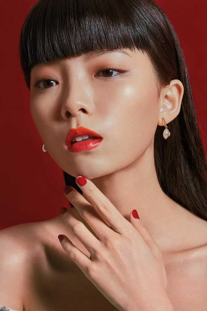 Red, gold and maroon aren’t just auspicious colours, they’re also a power combo for vivid-looking eyes during CNY. “Dab gold eyeshadow onto your lids – cream formulas work best as powder ones tend to be less pigmented. Line with a red eyeliner, and complete the look with purplish or reddish-brown mascara,” says Nikki. Alternatively, you can line eyes with red eyeshadow using a wet eyeliner brush.