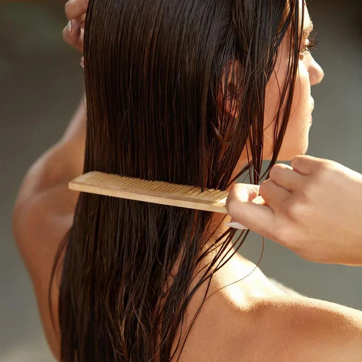 Then, use a wide-tooth comb and start detangling from the middle, instead of from hair roots. This reduces the strain to your scalp and strands, and minimises hair fall.