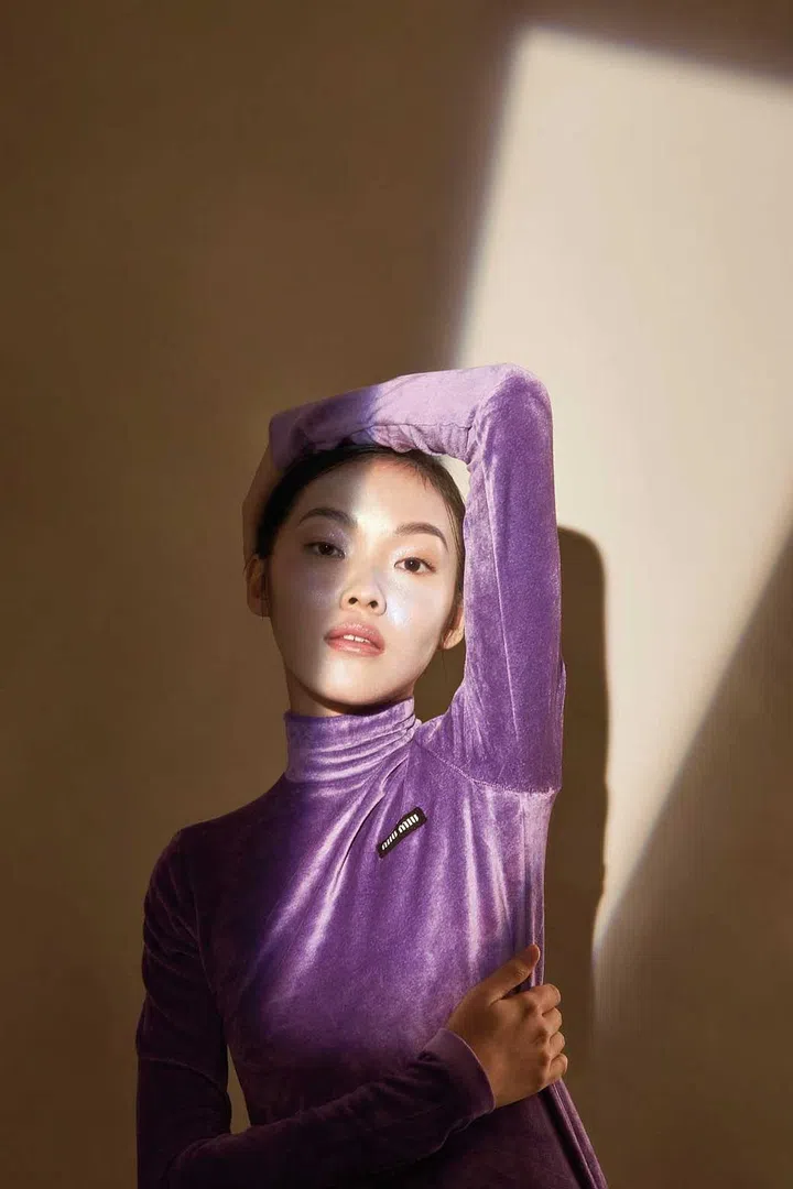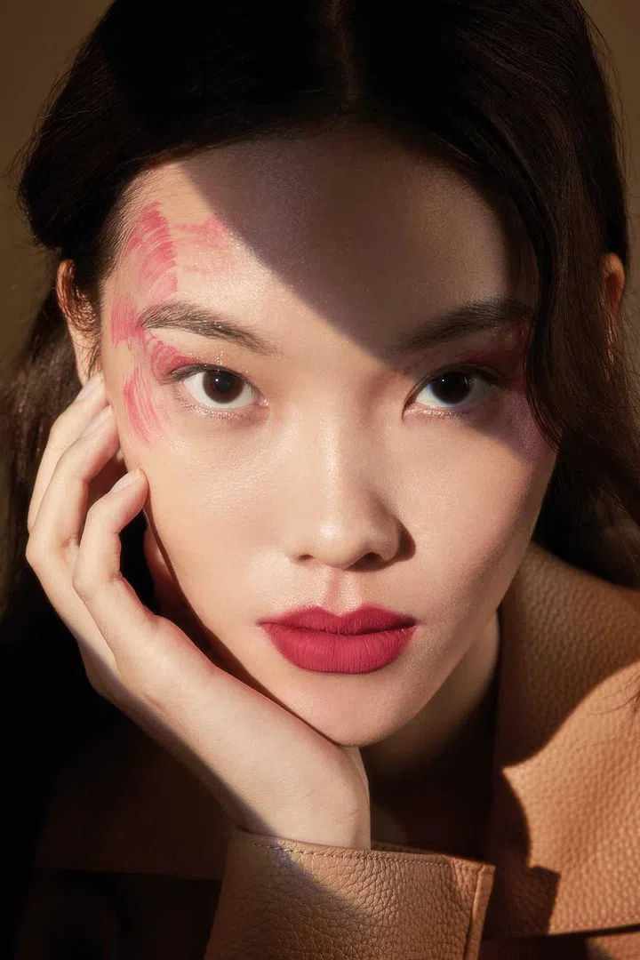 “In these mask-wearing times, having a bold lip is like wearing nice underwear – it’s for our own enjoyment. I pressed a fuchsia blusher onto fuchsia lipstick to create a soft, fluffy finish. You can achieve the same lightweight, velvety pout using a non-matte lipstick: Apply lipstick, then gently place a single-ply tissue over lips and dust some translucent powder on top using a fluffy brush. If you’re adventurous, you can even smear some lipstick on the temple for a geisha-like touch.”