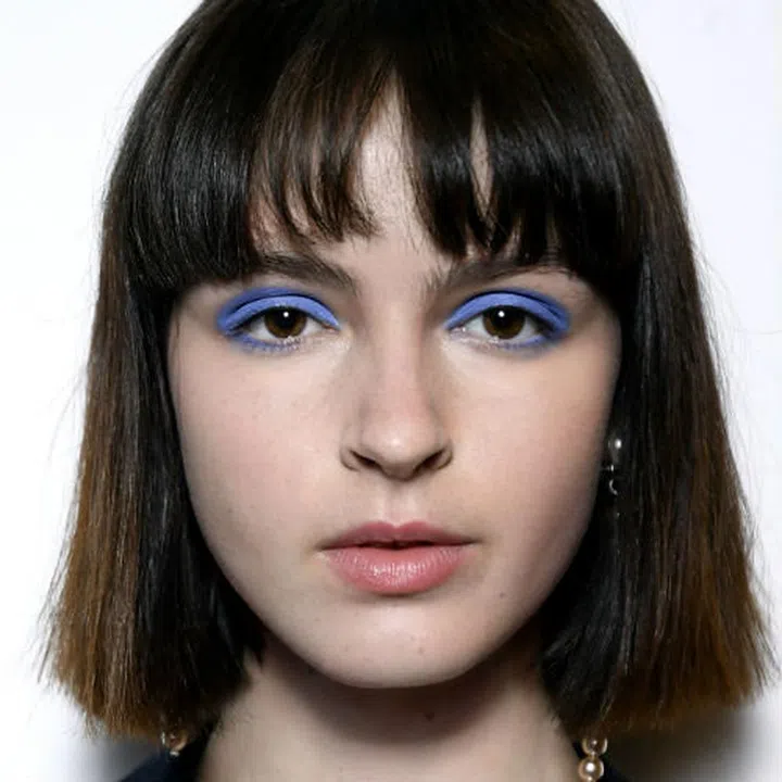 Messy, blunt bangs that barely graze the eyebrows pair well with a straight bob for an easy girl-next-door look.