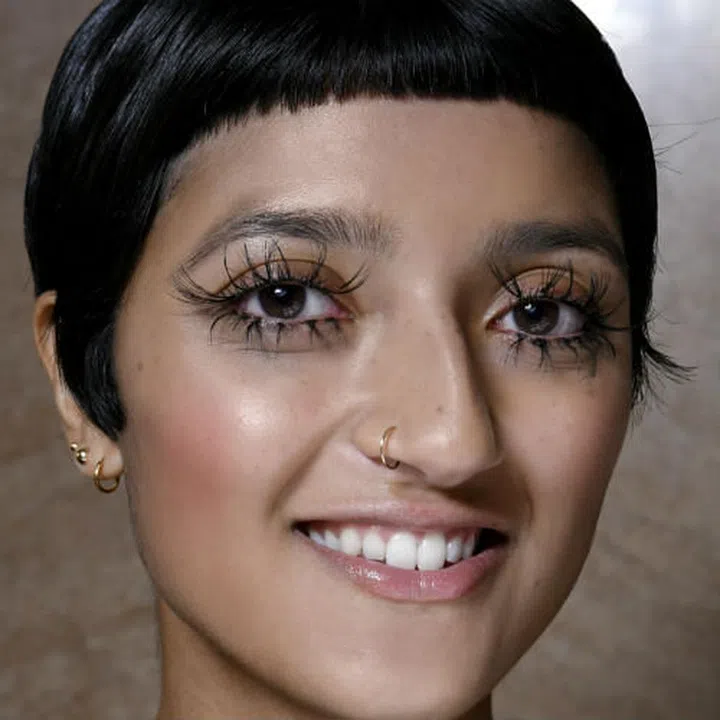 For something a little edgier: get a round pixie cut, straight, shorter-than-usual bangs, and thick sideburns. Looks like a modern take of a 90’s look, and little to no maintenance needed.