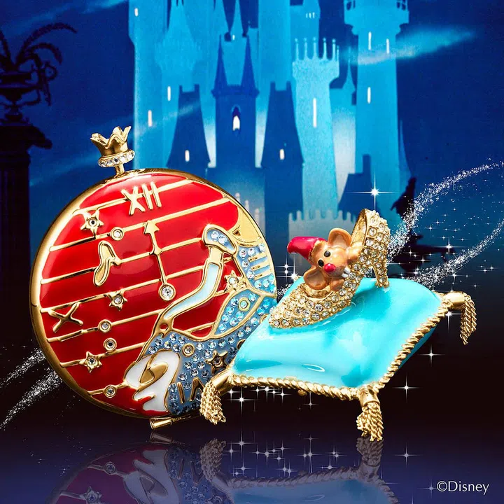 WHEN THE CLOCK STRIKES TWELVE Cinderalla Small Metal Compact, $350; A DREAM IS A WISH YOUR HEART MAKES Cinderella Solid Perfume, $560