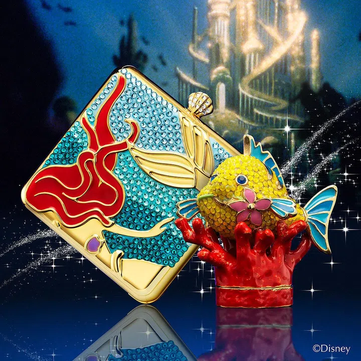MAKE A SPLASH Ariel Large Metal Compact, $350; UNDER THE SEA Ariel Solid Perfume, $560
