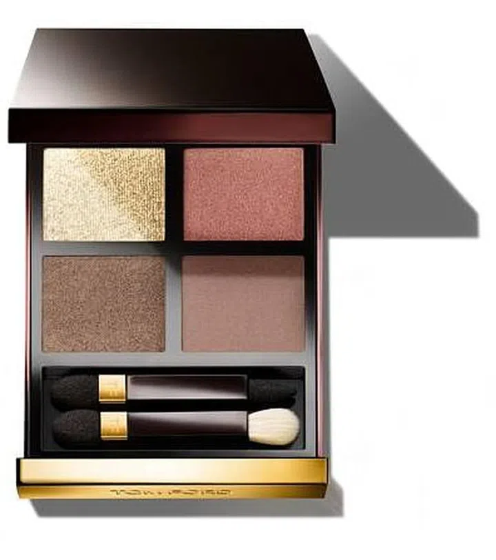 This comes with four shades from rich matte raspberry to a satiny rosy platinum to recreate a variation of different pink eye makeup looks from a softer, more wearable look to an exaggerated, intense smokey eye. One shade to love: the satiny platinum highlight that gives a pearlescent sheen to the peepers.