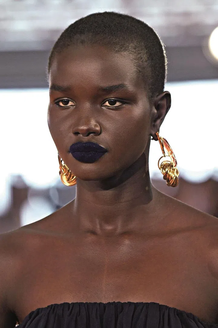 Now: It's a little more polished with a fresh, dewy complexion, bare lips and slicked back hair, as seen at Tom Ford and Tia Adeola during New York Fashion Week earlier this year.