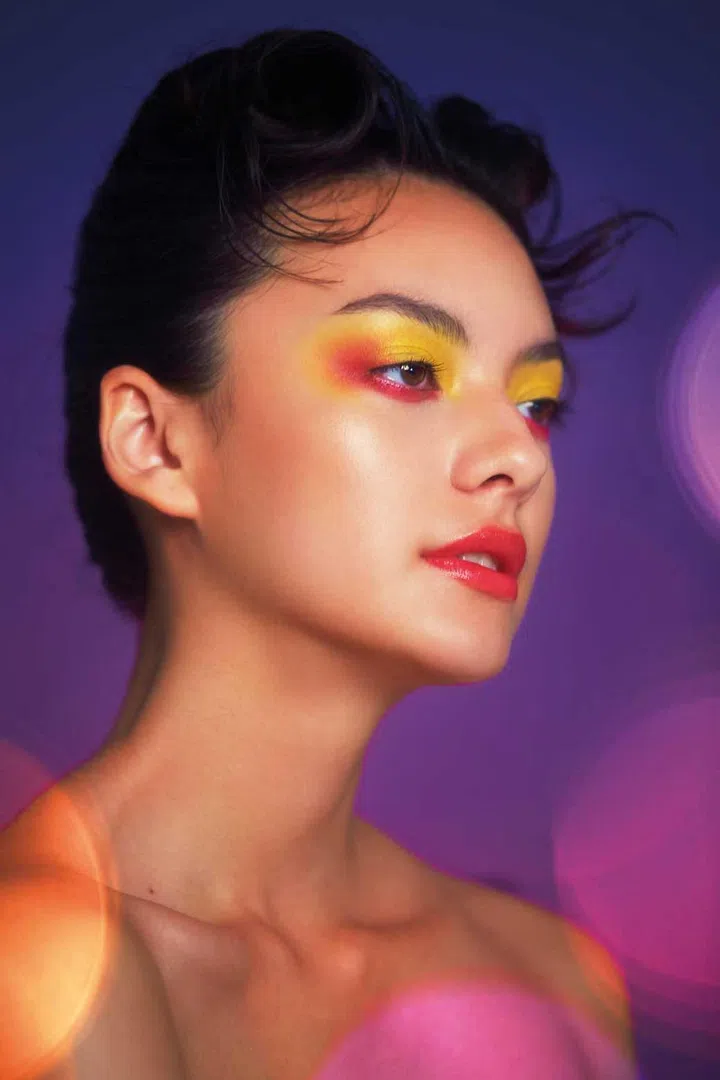 Pairing yellow and pink eyeshadow makes for a punchy but very pretty look. And contrary to what you might think, yellow can be worn on Asian skin. The trick, Yeo says, is to apply the eyeshadow only up to your eye crease, not above it. If you’re concerned that the pink might make your eyes look red-rimmed, use it only on the outer corners, and blend to soften the effect.