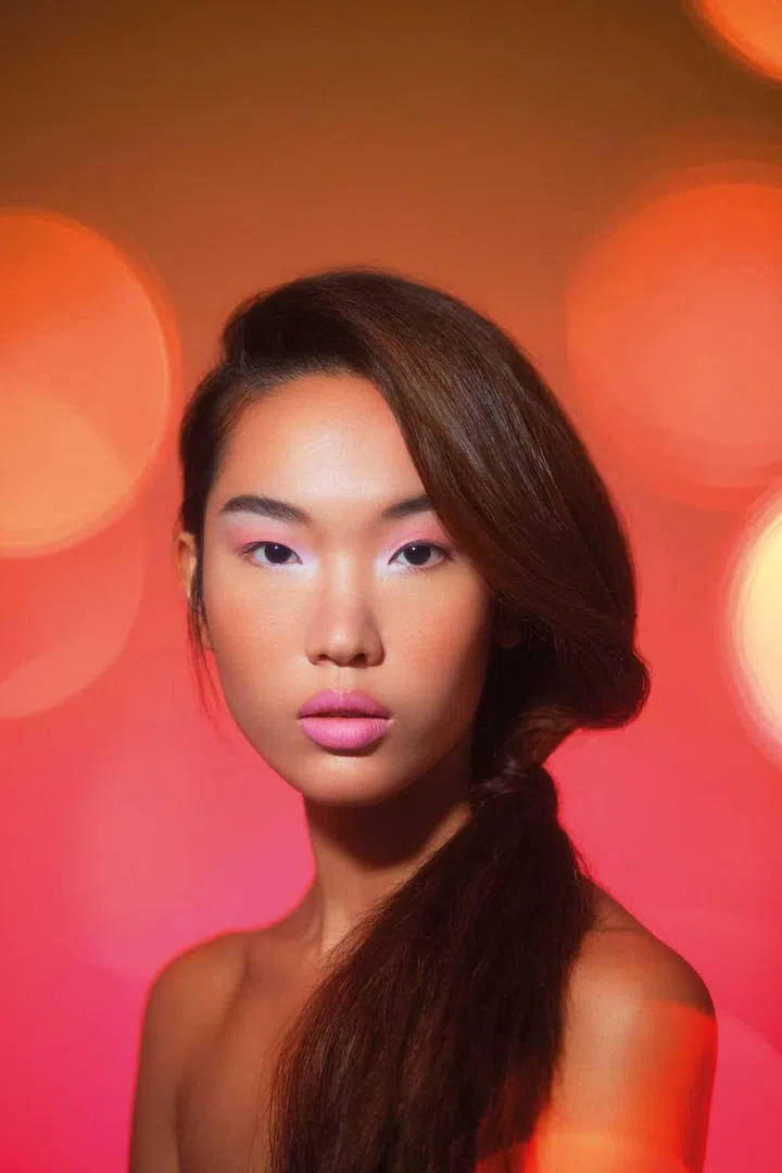 Channel the energy of a vibrant metropolis with a bold cheek colour against neon-lined eyes. To pull off this look, Yeo says to blend the blusher from the outer corners of the eyes in towards the cheeks, ending on the cheekbones. Use a softer pink or tangerine to make the look more wearable, and keep the rest of the face fresh and clean.