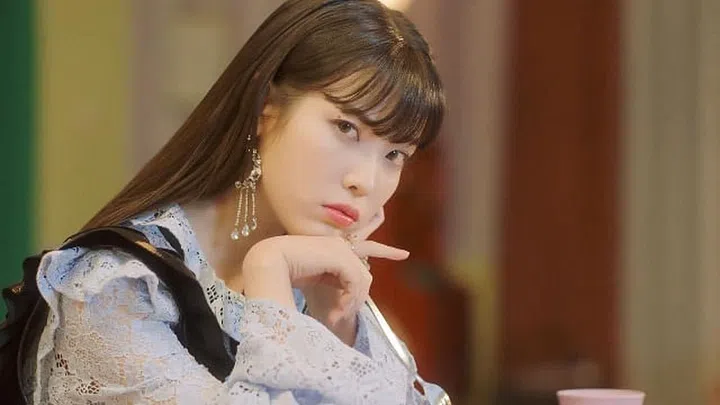 This French-inspired bare-faced, bright cherry lips ensemble seen on IU will complement a wide variety of skin tones. Apart from bright red luscious lips, the key to nailing this look is to conceal any imperfections on skin.