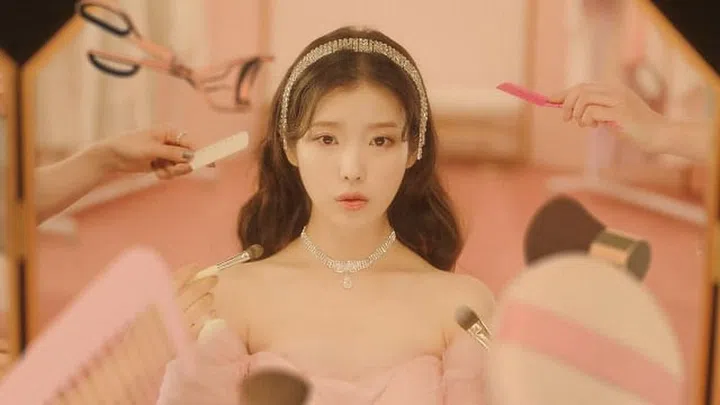 In the music video, IU plays two roles -- a celebrity decked out in opulent jewellery and and a regular girl doing everyday things. The music video culminates in the mirror scene where IU realises that she has always been both her own star and her own fan.