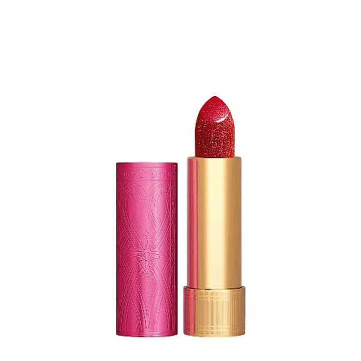 Let your inner starlet shine in this specially chosen shade by Gucci creative director Alessandro Michele. Infused with three types of glitter, it gives the lips three-dimensional sparkle and intense colour. For fuss-free colour, apply straight from the tube. For precise, defined lips, use a lip brush. But remember: bold and intense is how you’re supposed to wear it.