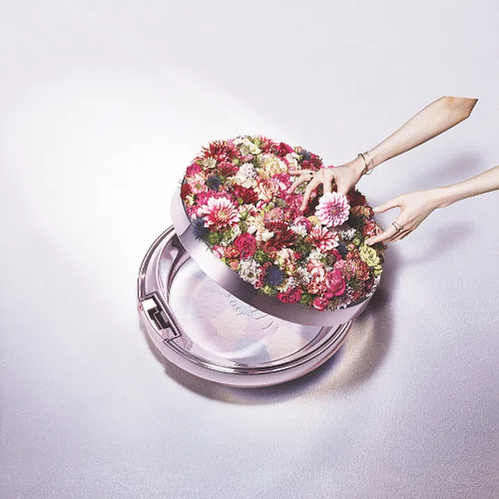 A multi-coloured powder compact, it gives the complexion a luminous glow. What we really like: the applicator puff contains hyaluronic acid and collagen, helping to hydrate the skin for a dewy and flawless finish. The gorgeous flower motif also lends an elegant touch, making this a pretty compact in any makeup bag.