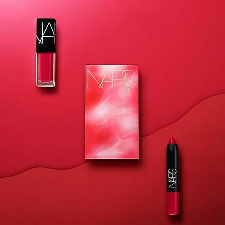 Wear: NARS Explicit Colour Lip Duo in Dragon Girl, $36, includes mini sizes of the Velvet Matte Lip Pencil and LIp Tint in the Dragon Girl shade, a blue-based red that instantly brightens any skin tone.