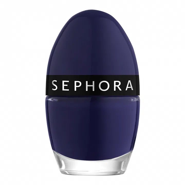 Wear: Dress your nails in two coats of Sephora Color Hit Nail Polish in L153 Blue Suede Shoes, $7, for an inky blue finish.
