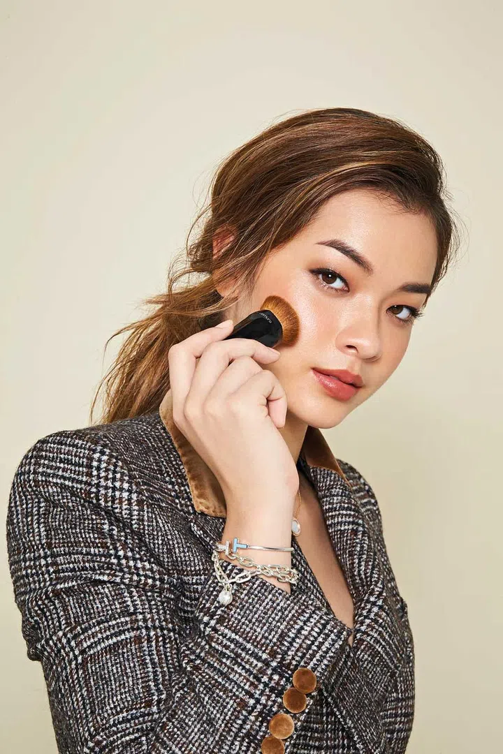A wash of healthy colour on the cheeks speaks of good living. Fair and cool skin tones should opt for light pinkish blushers, while yellowish or warm tones should choose peachy shades. Stick to delicate colours. “You can also use two blushers of different intensities to contour the face. Apply the lighter one on the apples of the cheeks, and the darker one under the cheekbones,” says Fu.