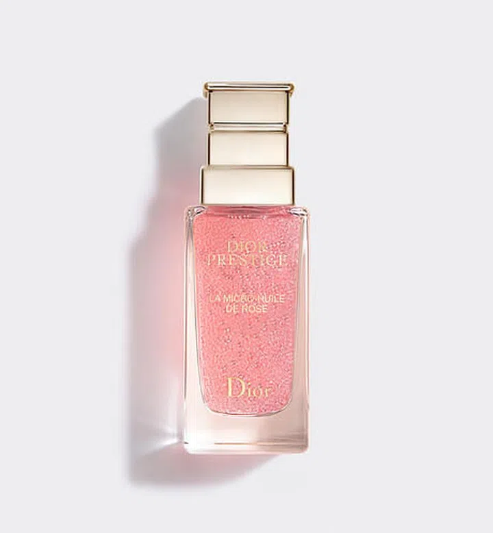 One bottle is sold every minute around the world. Each contains 10,000 rose micro pearls that burst upon contact with skin, to help it repair micro inflammation caused by aggressors like pollution and UV rays.