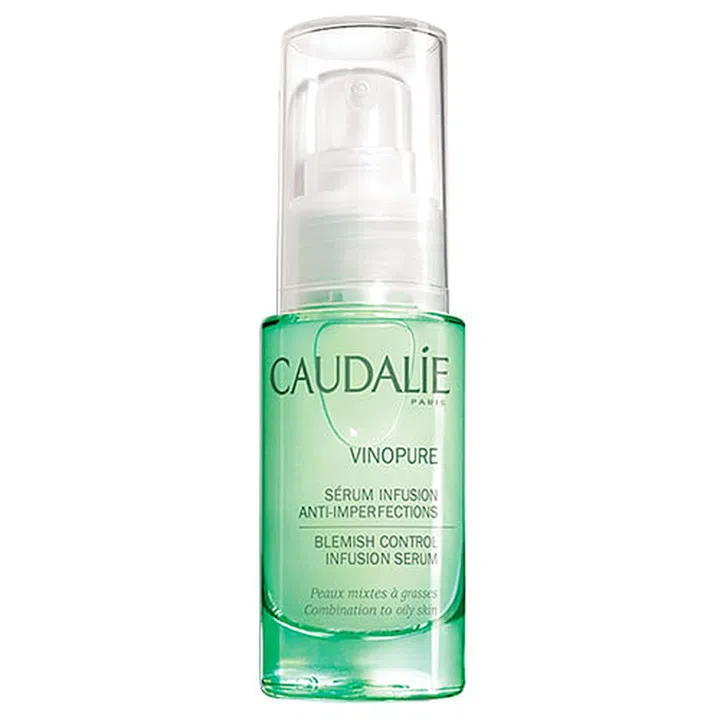 A concentrated mix of seven alpha- and beta-hydroxy acids, such as glycolic, lactic and salicylic, dissolves waxy plugs in pores, regulates oil production and boosts skin renewal.