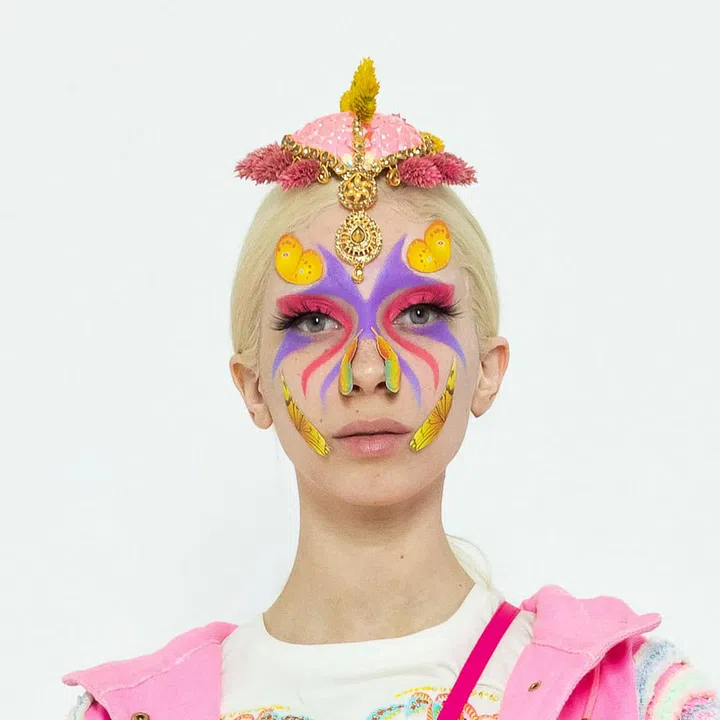 We’re convinced that nothing can top the drama showcased at Manish Arora, where models wore face paint, cut-outs stuck onto the face, butterfly wings, and other assorted accoutrements.