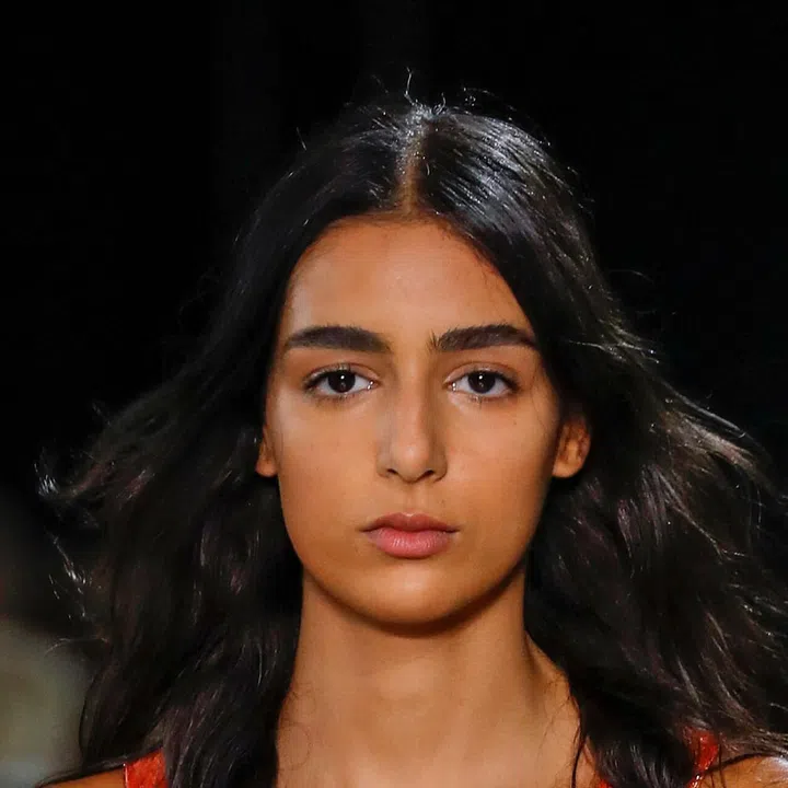 The makeup at Rochas was decidedly minimalist, with models wearing either brown or nude lips, and little else. However, much attention was paid to the brows – a handful of models were spotted with big brows pencilled in with black.