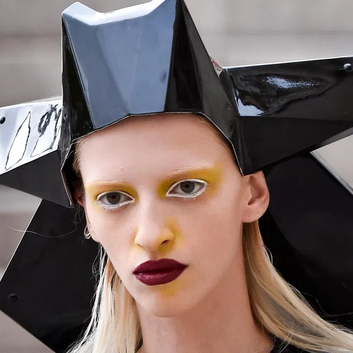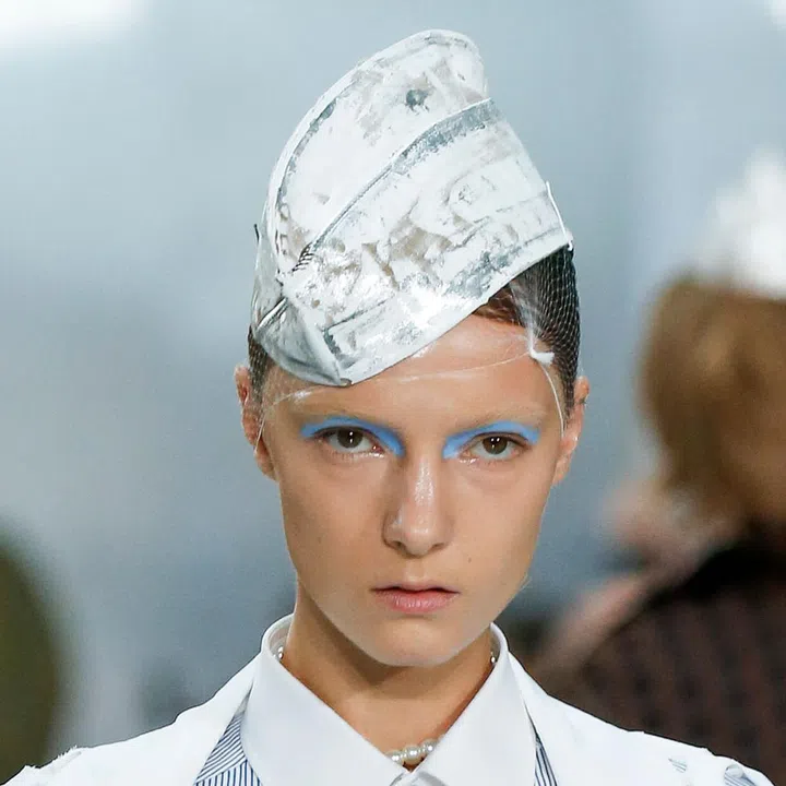 Want to know how to truly make a statement? Bleach your brows and add a swipe of blue across both eyes like a select few models at Maison Margiela. Is it ridiculous? Yes. Is it statement making? Also yes. Clearly, this is not a look for the faint-hearted.