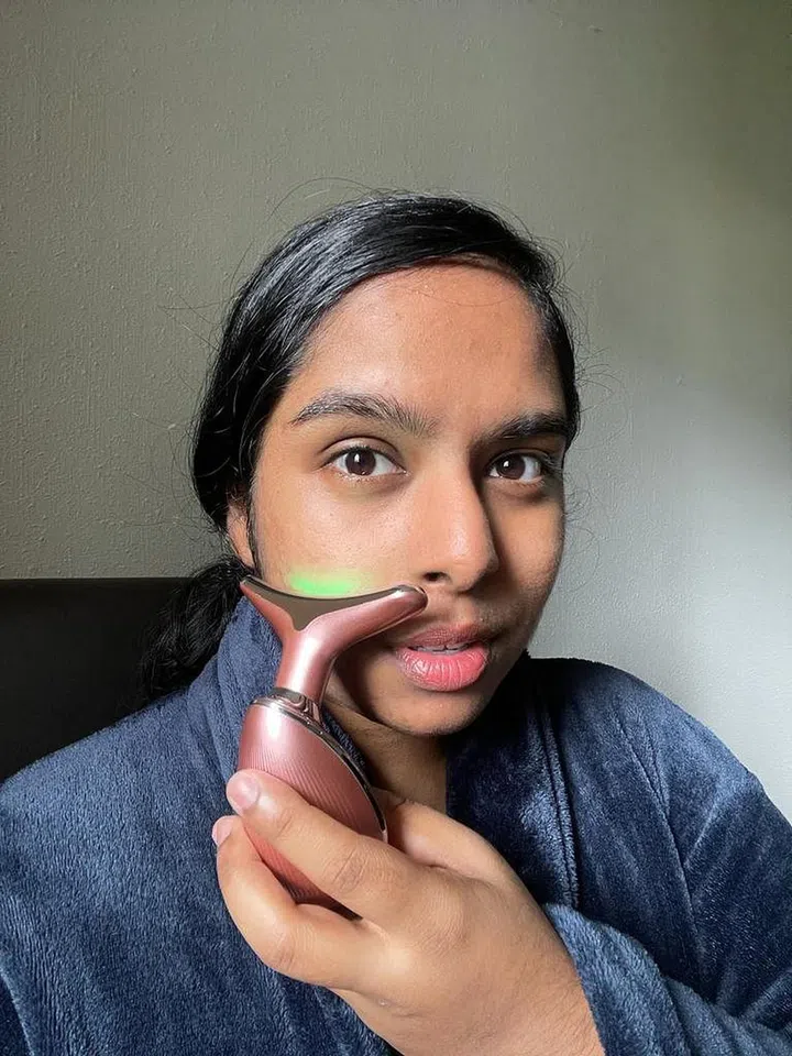 I actually look forward to doing my skincare routine [because of the device] and I love waking up to happy, healthier skin. My skin feels more calm, pores are less noticeable and I see more definition in my jawline.