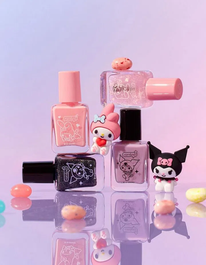Obsessed with jelly nails? rom&nd has also released new mood pebble shades in the collaboration with Sanrio, featuring 4 new jelly-like see-through colours in nude pinks and purples, with a special Kuromi translucent shiny black for a chic look, reminiscent of the character’s playful charm.