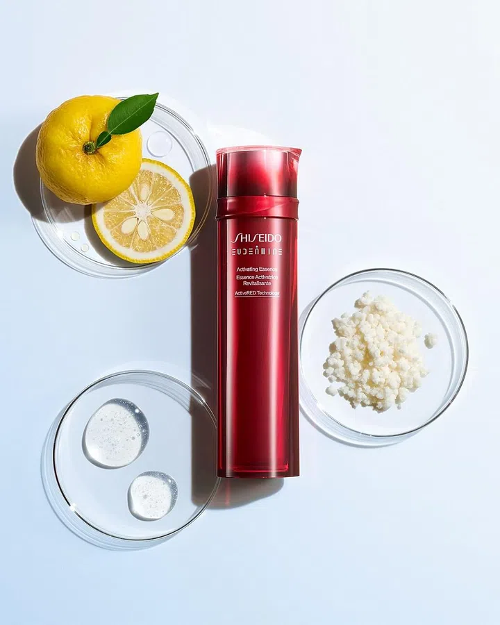 Shiseido Eudermine Activating Essence contains a double dose of hyaluronic acid, promising 24 hours of deep hydration. Vitamin C clarifies, brightens and evens complexion, while yuzu extract recharges skin’s moisture. The product also contains fermented kefir extract, an exclusive prebiotic that strengthens skin's barrier function and promotes its cell turnover cycle.