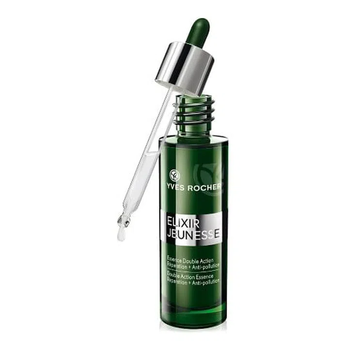 The Elixir Jeunesse Double Action Essence is a serum that fights against free-radical damage caused by pollution such as blue light, fatigue and stress to prevent signs of premature skin ageing.