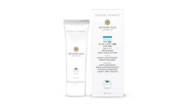 The Crystal Tomato Beyond Sun Protection offers complete protection against UVA, UVB, Infrared and blue light damage. It’s also formulated with antioxidants which help neutralise free radicals, protecting again against premature ageing (read also "How The First Clinically-Proven Blue Light Sunscreen Was Developed").