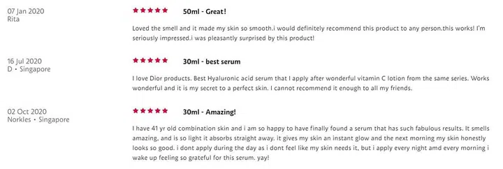 Superb reviews: Dior Capture Totale is loved not only by celebrities but by everyday women who have witnessed its anti-ageing benefits. We’ll let the reviews of its star Super Potent Serum, taken from Sephora.sg, speak for itself.