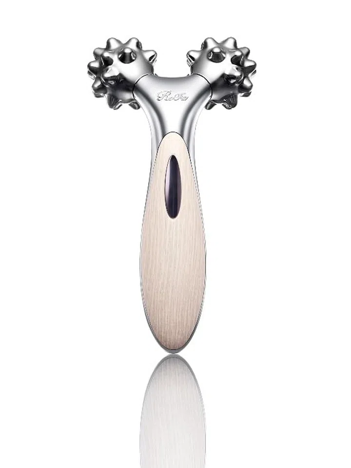 Designed by Japanese craftsmen, this gently relieves facial tension and improves circulation deep within skin and muscle layers. Plus, its 50 evenly-spaced projections deliver direct, perpendicular stimulation to mimetic muscles to soothe muscle fatigue. To use, gently roll over on areas such as your forehead, jaw, cheeks and chin.