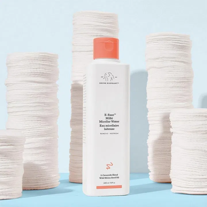 “If you really need a refresh mid-day, try a mild cleansing water (like E-Rase, which is loaded with ceramides, vitamin E and soothing non-fragrant plant oils) with a soft cotton pad.”