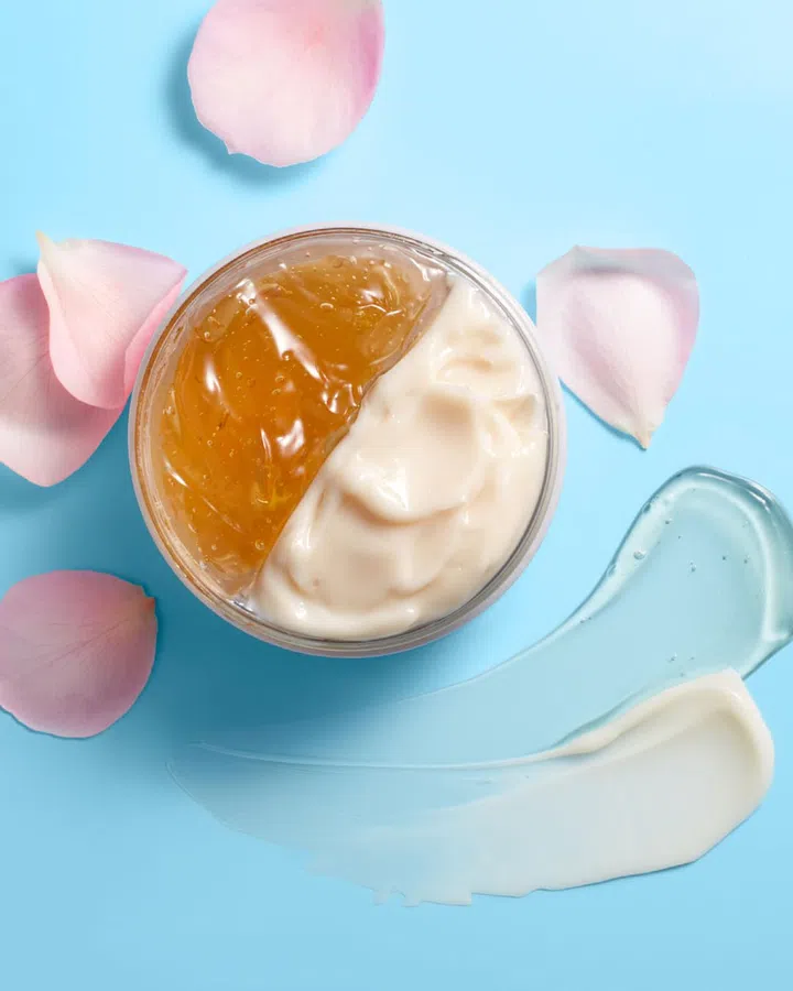 Then massage in the silky Gel-Cream Mask to seal in the moisture. Powered by time-release liquid patch technology, there is a combination of two virtual liquid patches that form an invisible moisturising veil on your face to attract and lock in moisture. This is so that the sleeping mask can continuously delivers deep hydration throughout the night.