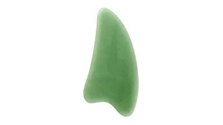 - Use a jade tool because that is what’s traditionally used in TCM. Plus, jade is said to carry healing energy and it also balances the body’s qi. Jade also cools down the skin and soothes it, which aids in healing and detoxification. Lin recommends using a tool that is flat on one side and has rounded knobs or edges on the other. You could also use a facial roller but Lin says it will be less intense on the face. Ultimately, you should choose the tool you’re most comfortable using.