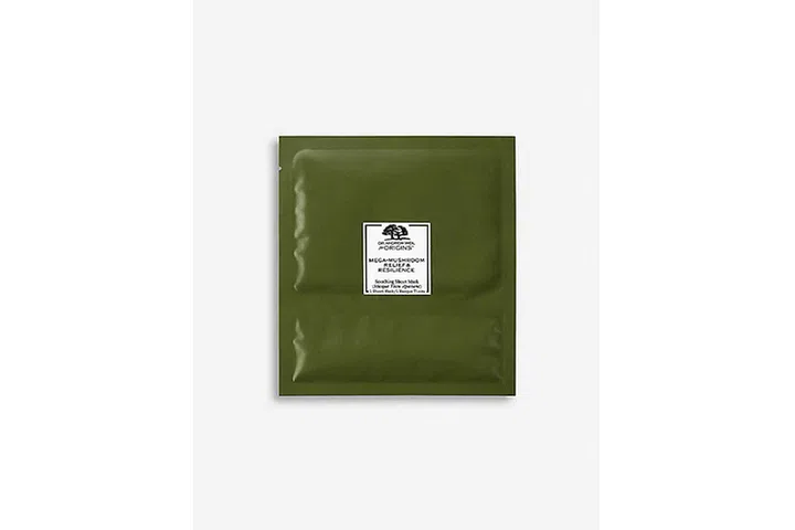 Sheet Mask: Origins Mega-Mushroom Relief _ Resilience Soothing Sheet Mask, $54 for a box of six, www.tangs.com