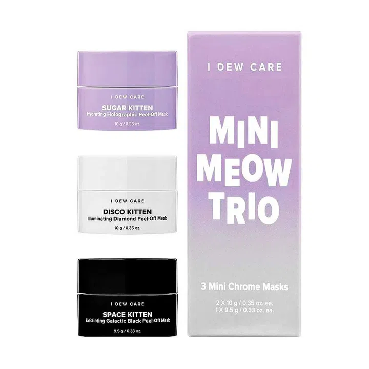 Pick and choose what you need from this mini masking trio. Disco Kitten brings a glow to dull skin, Sugar Kitten gently sloughs off dead skin and hydrates it at the same time, and Space Kitten combats an oily T-zone with charcoal and volcanic ash. Plus, the iridescent shimmer and pearlescent peel-off masks make for a fabulous self-care session every time.