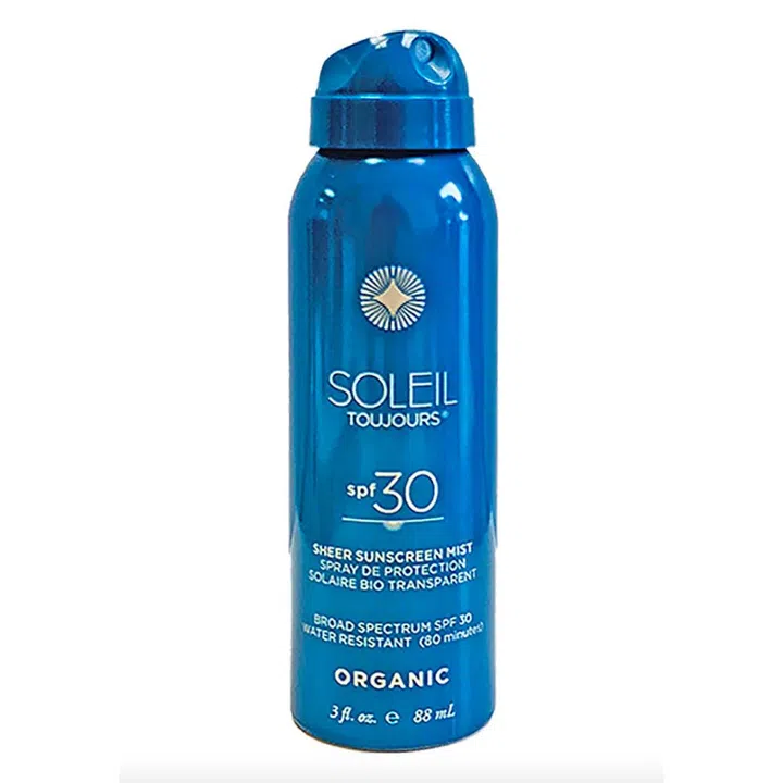 Looking for a sunscreen that's formulated without oxybenzone or octinoxate – also known as one of the top few hormone disruptors in sunscreens – peep Soleil Toujours' Organic Sheer Sunscreen Mist. Infused with a unique blend of red algae, vitamin C ester, vitamin E and bisabolol, the sunscreen helps to reduce UV-induced damage, prevents loss of firmness, increases skin smoothness and decreases wrinkle depth.