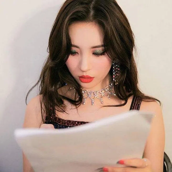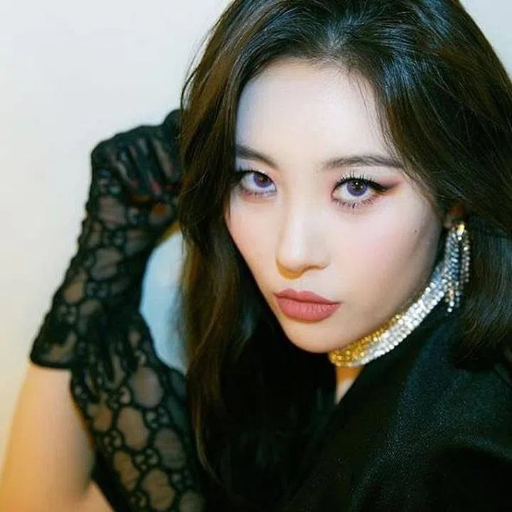 A smoky eye look is always ideal for fancy occasions or nights out. How to take it up a notch? Add on coloured contact lenses – Sunmi’s choice: purple. How to further elevate it? Lengthen your lashes by putting on some falsies for a more dramatic and eye-catching look.