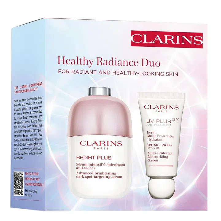 Clarins’ Healthy Radiance Duo – made up of the Bright Plus Advanced Brightening Dark Spot-Targeting Serum and UV Plus [5P] Anti-Pollution SPF50/PA+++ Sunscreen – will empower you with radiant and healthy skin.