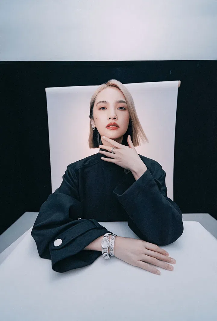 Saying goodbye to over a decade of long hair, Rainie Yang unveiled a refreshing look with a straight bob. She made the simple look more interesting by having a gradient hair colour, with the outer layer a light milk tea colour while the inner layer is dark green.