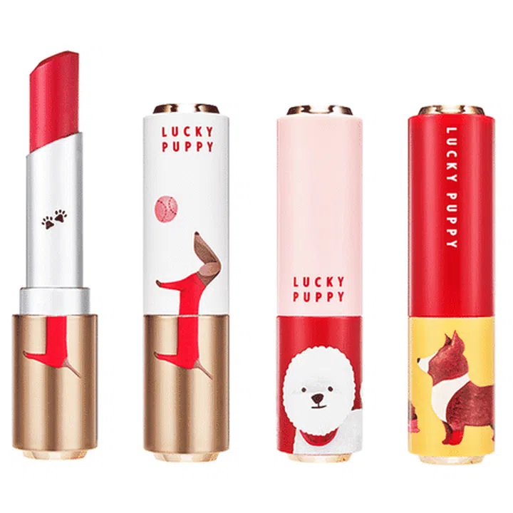 Etude House is another K-beauty brand to create a limited edition collection, the Lucky Puppy Makeup Collection, in honour of man’s best friend. The collection comprises of cushion foundation covers and bold lip tints topped off with a vibrant red and yellow packaging that features various breeds of pups. A bright bold red lip is pretty much synonymous with Chinese New Year.