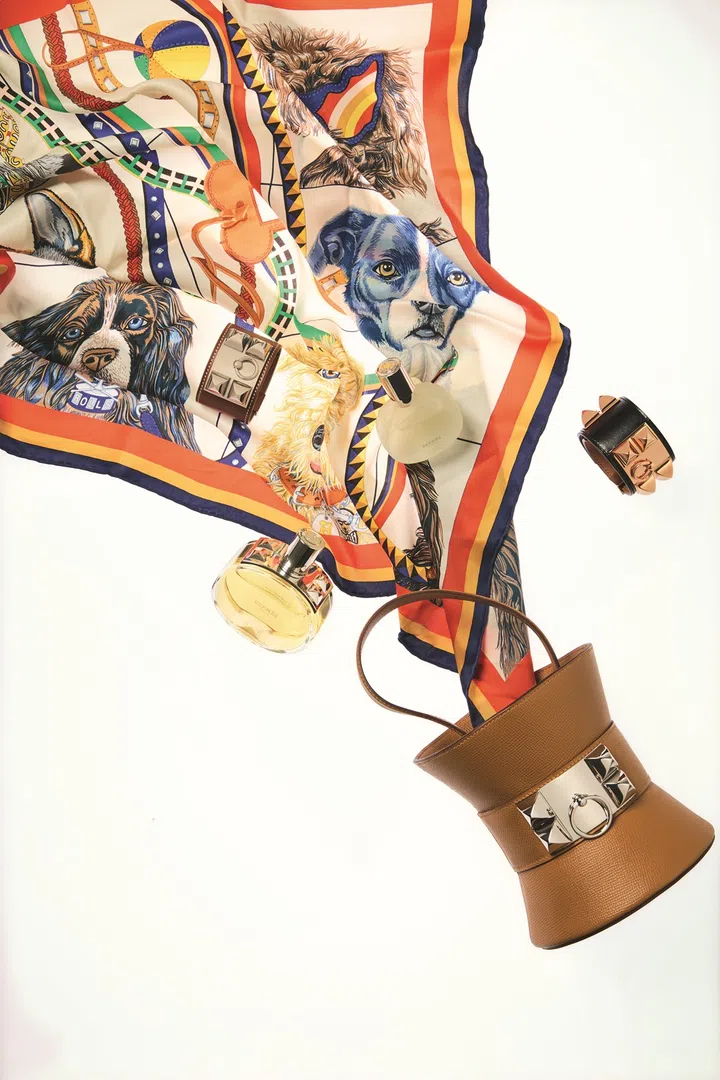 Scarf, bracelet and bag, Hermes